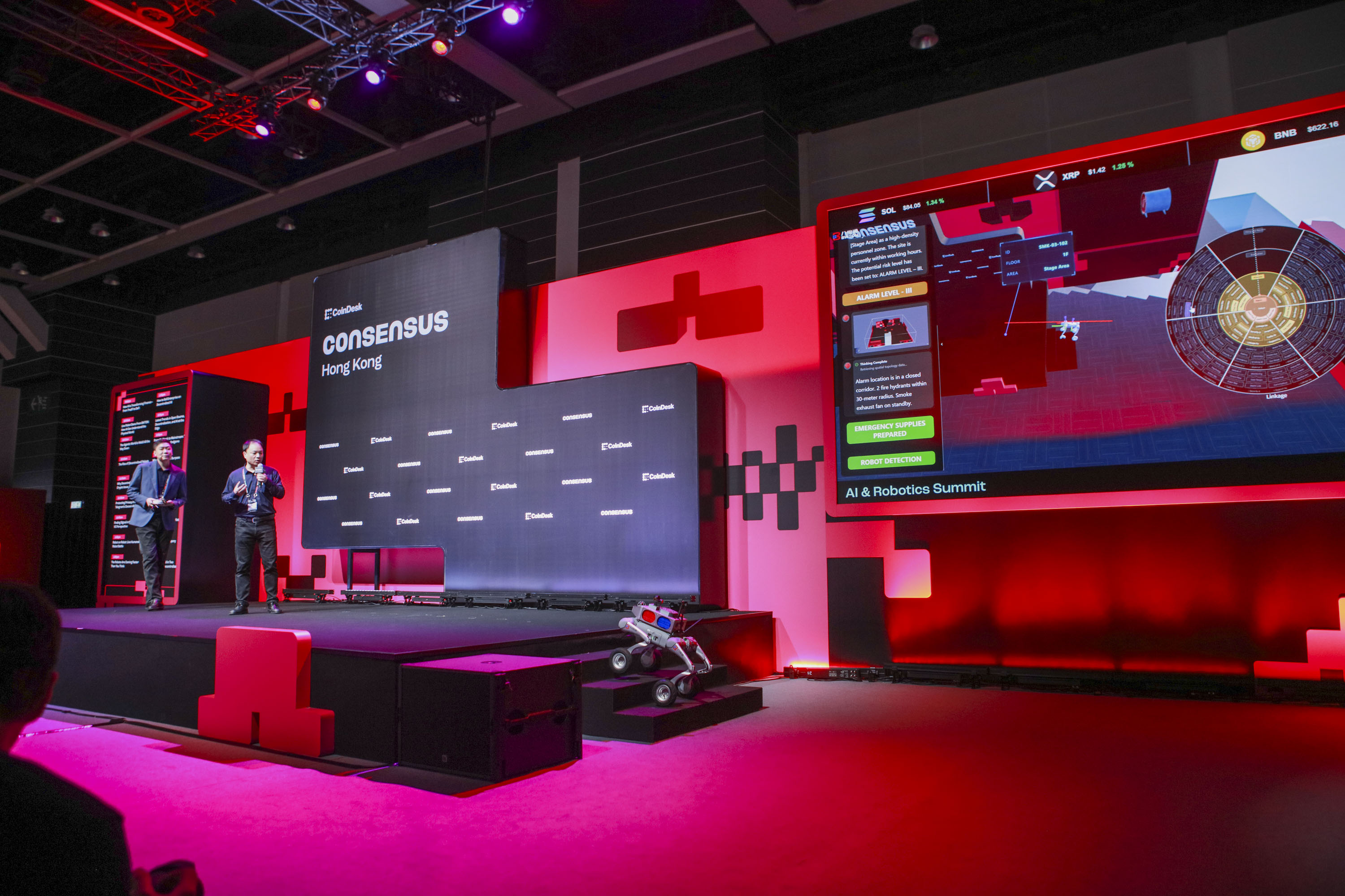 在全球數字資產從“概念探索”邁向“建制融合”的關鍵節點,2026年2月10日至12日,備受矚目的Consensus Hong Kong 2026在香港盛大舉行。本屆大會以“Web3與區塊鏈加速應用新時代”為主題,首度增設“人工智能與機器人峰會”,系統探討AI、機器人技術與區塊鏈的融合路徑與生態構建。作為空間智能領域領軍企業,八維通科技有限公司團隊應邀參會,攜公司前沿的具身智能解決方案精彩亮相。通過實景機器人演示與深度演講,八維通向全球展示了“物理世界可計算、可交互、可信任”的智能化未來。